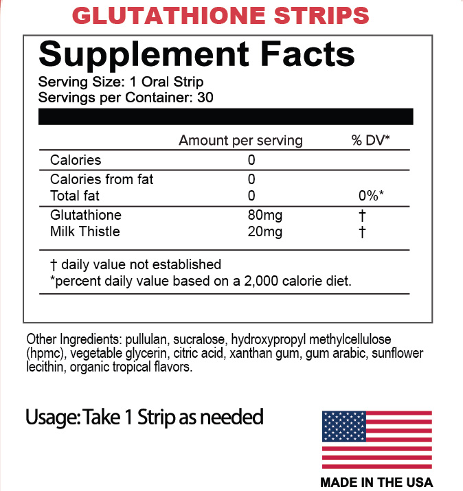 Glutathione Antioxidant Dissolving Strips Supplement Facts Overview