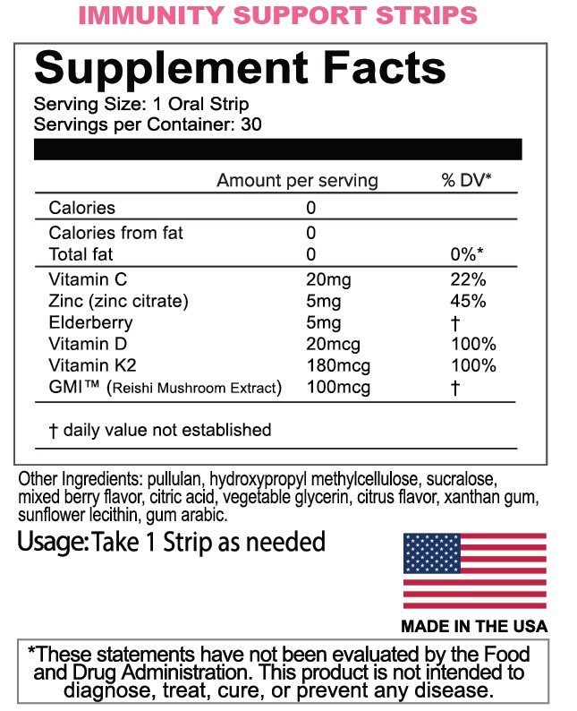 Immunity Support Dissolving Strips Supplement Facts Overview
